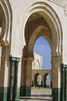 Dans l'enceinte du palais, au delà des arcades, se répartissent les cours et patios andalous.